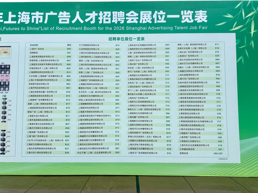 新民晚报记者获悉,此次招聘会汇聚110家涵盖广告全产业链的企业,包括阳狮集团、小红书、哔哩哔哩、蓝色光标、利欧数字、剧星传媒、分众传媒、德高广告、美腕等国际国内一流广告企业、互联网平台企业、数字营销机构、MCN 机构。现场提供了近1000个就业及实习岗位,涵盖广告创意、媒介策划、数字营销、品牌管理、数据分析、综合职能等领域,吸引了528所海内外知名高校的师生参与。